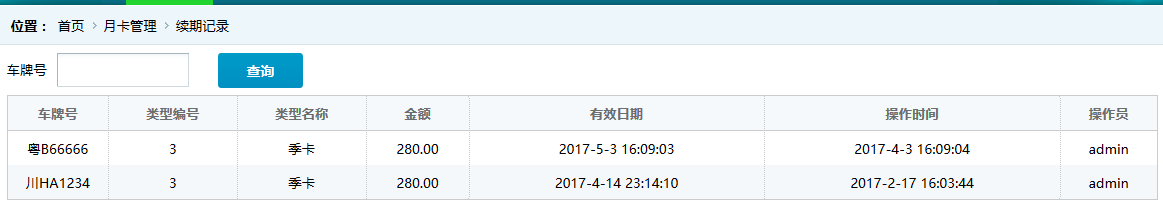 ●續期記錄 顯示續辦月卡的歷史記錄,如圖: